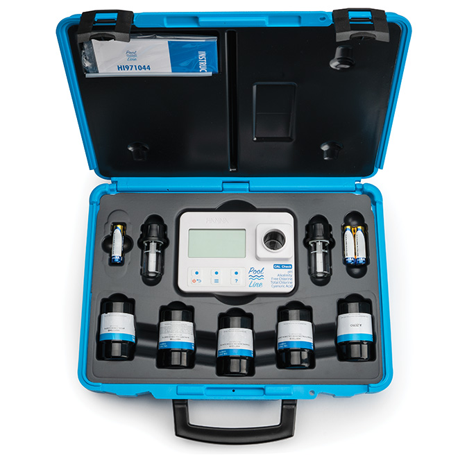 Il fotometro portatile HI971044 della serie Pool Line è progettato per misurare pH, alcalinità, cloro libero e totale e acido cianurico in piscine, vasche idromassaggio e spa. Questo fotometro combina precisione e facilità d'uso in un design semplice e portatile. Il sistema ottico avanzato fornisce un'accuratezza da laboratorio mentre il suo design intuitivo è facile per qualsiasi utente, rendendolo il fotometro perfetto per le tue misure della qualità dell'acqua nelle piscine.