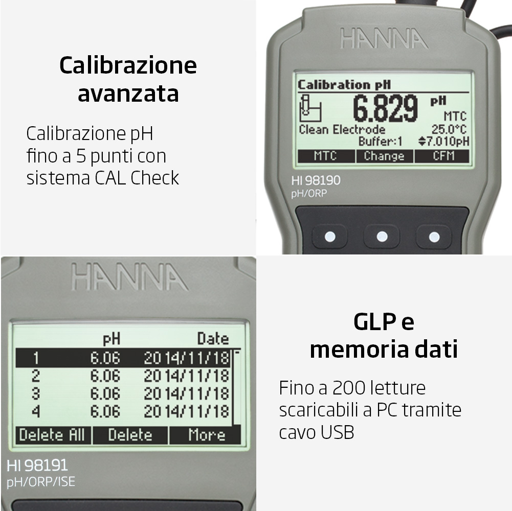 Gli strumenti Hanna di nuova generazione sono molto di più di “normali” pHmetri. Offrono funzioni avanzate, eccellenti caratteristiche costruttive e sono dotati di elettrodi e sonde di qualità superiore.