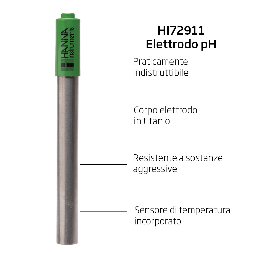 | Elettrodo pH | HI72911B elettrodo pH con corpo in titanio, sensore di temperatura interno, connettore BNC e cavo da 1 m |
