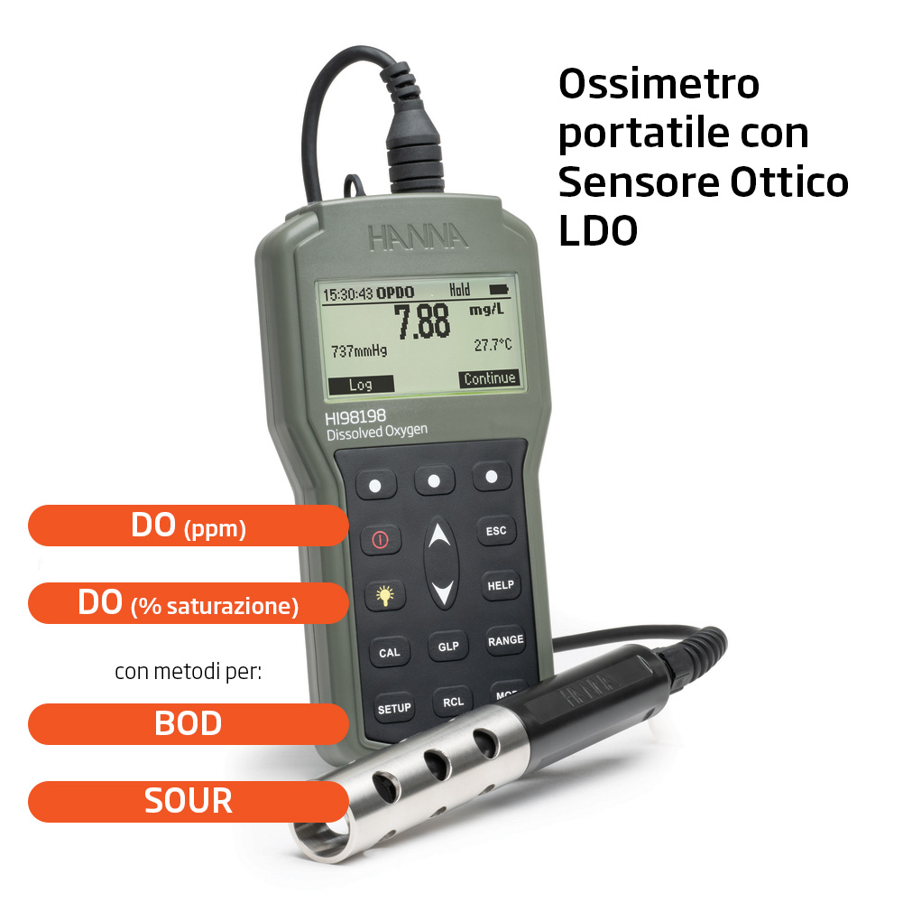 Misuratore portatile Hanna Instruments di ossigeno disciolto con tecnologia ottica LDO - HI98198 - opdo