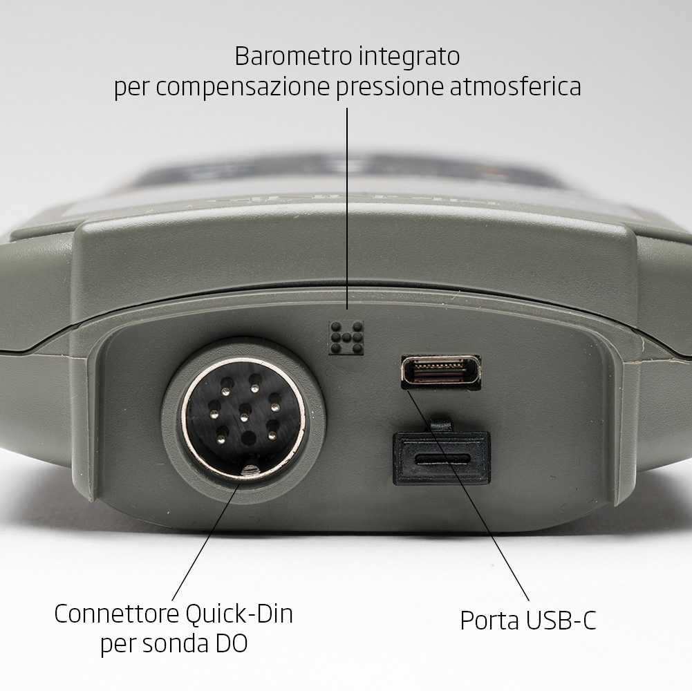 • Registrazione dati: Lo strumento può memorizzare fino a 4000 letture (1000 per ciascun canale: DO mg/L, DO %, pressione e temperatura). Le misurazioni possono essere registrate manualmente, premendo un tasto, oppure automaticamente, a intervalli di tempo configurabili dall'utente (dalla misurazione immediata a intervalli di 180 minuti). Questa capacità di data logging è fondamentale per il monitoraggio a lungo termine e per l'analisi delle tendenze.