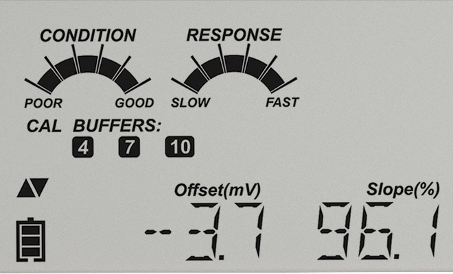 Durante la calibrazione, HI2621 verifica automaticamente il comportamento della sonda e mostra a display messaggi chiari in caso di anomalie.